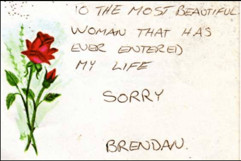 The next day at work, two dozen long-stemmed red roses were delivered with a handwritten note that read—To the most beautiful woman that has ever entered my life, sorry.