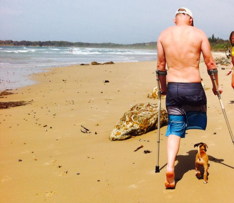 What about the day we picked up our rescue pup from the kennels and brought him home to surprise the kids? They couldn’t believe their eyes when little Oti jumped through a hole in the fence and ran up to them, dressed in the perfect red bow. And him being your little shadow everywhere you went. Oti slept when you slept and wanted to play all day when you were awake. We would take him on long walks on the beach, him choosing to walk in the gap left by your missing leg.